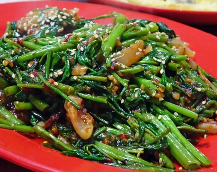 空心菜是碱性食物,并含有钾、氯等调节水液平衡的元素,食后可降低肠道的酸度,预防肠道内的菌群失调,对防癌有益。所含的烟酸、维生素C等能降低胆固醇、甘油三酯,具有降脂减肥的功效。空心菜中的叶绿素有“绿色精灵”之称,可洁齿防龋除口臭,健美皮肤,堪称美容佳品。它的粗纤维素的含量较丰富,这种食用纤维是纤维素、半纤维素、木质素、胶浆及果胶等组成,具有促进肠蠕动、通便解毒作用。空心菜性凉,菜汁对金黄色葡萄球菌、链球菌等有抑制、预防作用,可预防感染。因此,夏季如经常吃,可以防暑解热、凉血排毒、防治痢疾。嫩梢中的蛋白质含量比同等量的西红柿高4倍,钙含量比西红柿高12倍多,并含有较多的胡萝卜素。