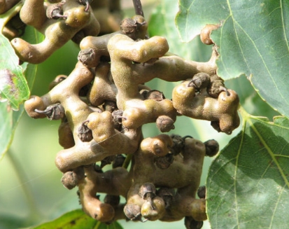 我们吃的拐枣其实并非它的果实,而是它肥厚的果柄。其真正的果实是球形的,大如豌豆,坚硬而干燥,如果把果实剖开,可见里面有3个小室,每一室内镶着1枚种子。每当深秋,拐枣成熟之时,你只要用力摇一下树,拐枣就会像雨一样落下来,当地农民也常常一串串采下来,晾干后,拿到市场上出售,就像某些地区卖醋柳一样,极受孩子们欢迎。同样还有其他的吃法:
