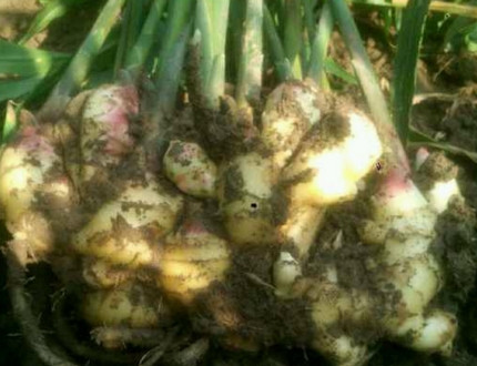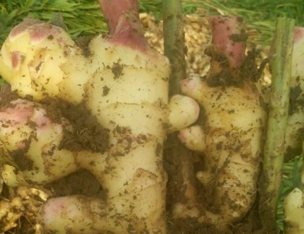 当秋末气温在8——18℃时,秋高气爽,光照充足,昼夜温差大,正是形成产量的关键时期,适当延长生长期,可大大提高生姜产量。冀西地区大田收获生姜的最佳收获期应在10月25——30日,此时收获生姜既不会冻伤姜块,又可让生姜增产。因此,一定要掌握最佳的收获时机,切不可过早收获。为便于储藏和养分的回流,生姜在收获时要留2——3厘米左右的茎秆。