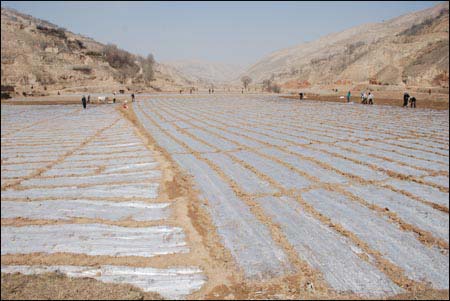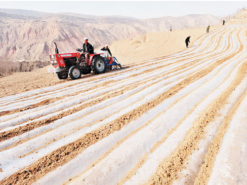 2015年宁夏海原县在旱作区推广全膜双垄沟播技术,全膜双垄沟播技术是甘肃农技部门经过多年研究、推广的一项新型抗旱耕作技术,该技术集覆盖抑蒸、垄沟集雨、垄沟种植技术为一体,实现了保墒蓄墒、就地入渗、雨水富集叠加、保水保肥、增加地表温度,提高肥水利用率的效果。