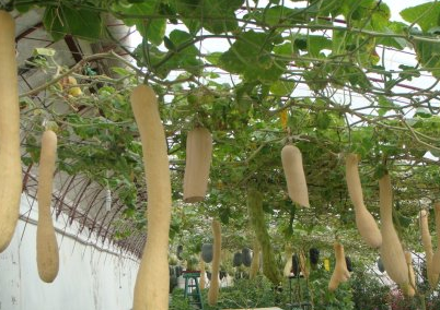 耐观赏,叶绿、花黄、瓜形优美,瓜色油绿、金黄,像棵棵彩柱闪金光,美化庭院。