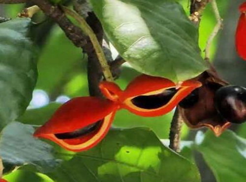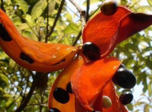 苹婆不仅叶片比假苹婆大,果实也要比假苹婆小一些,有可能是假苹婆比较心虚,长不了那么大。苹婆每瓣荚里有一到三个籽粒,籽粒的大小一般介于蚕豆和鸽蛋之间,比较巨大。而假苹婆,不多说,每个荚里面的籽粒很多,可以达到六七个,但是每个籽粒的大小没什么差距,差不多和花生米般大。这也是苹婆与假苹婆之间一个比较明显的差异。