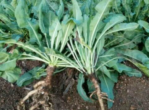 播种后,要注意观察,盖地膜的有70%出苗,就可揭开地膜,进行浅锄,除去小杂草。当苗高3~5厘米时进行间苗,剔除小苗、弱苗,留壮苗,苗距4~6厘米;当苗高7~10厘米时进行定苗,苗距8~10厘米。留苗距太密时,根小,叶片不肥厚;苗距过大,主根易分叉,须根多、条不直,产量降低。