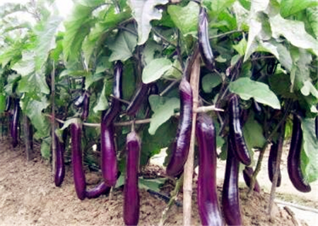 系海南三亚的优良地方品种。植株生长势强,一般株高90-100厘米,株幅80厘米左右。果实长条形,匀直;果长23-28厘米左右。果皮紫红色。有光泽、商品性极好。肉质细软、品质上乘。该品种极耐湿热、抗寒性一般。一般亩产3000-4500公斤。该品种主要在海南省南部栽培面积较大。