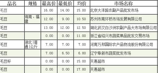 2018年毛豆价格最新行情