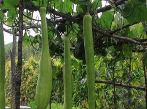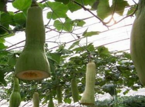 3.上棚搭架:砍瓜若采用爬地栽培,瓜形弯曲,不方便采收,要高产优质需搭架栽种。在植株开始甩蔓生长时及时搭架,瓜藤长至0.5-0.8米时搭起棚架。棚架高度为2米左右,将瓜藤引上棚架并用包装带固定好,以防刮风时倒下,平棚产量高,果形好,零星种植以平棚好,种植时要注意进行人工授粉,每天早上6点至7点半时进行人工授粉,确保座果率。
