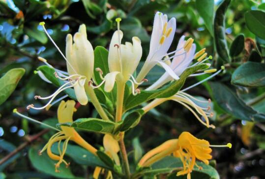 山银花和金银花的花色也有者差别,山银花颜色比金银花的颜色深一些,其色墨绿可能带一些紫色。