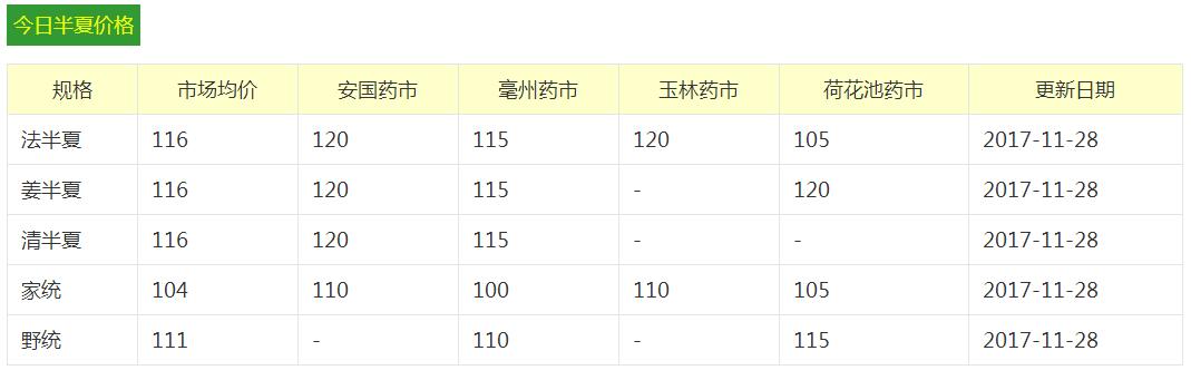半夏最新价格: