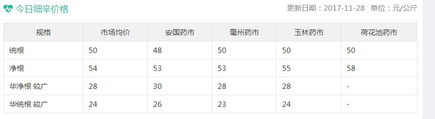 据了解,细辛价格在四五十元一斤,不同品种不同地区价格不同。