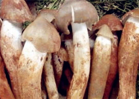 鸡冢,亦名鸡枞,担子菌纲,伞菌科高营养食用菌。全州野生产量约120吨,每年上市量约40吨。主产于西南地区。鸡?菌整个生长周期都要依靠土栖性的白蚁,长有鸡枞菌的土壤下面必有白蚁巢结构。一般头年生长的地方,第二年还会在原地长,这个地方叫“鸡枞窝”。如果蚁巢结构受到干扰导致白蚁动迁,来年此处就不会有鸡?了。采食鸡枞要抓紧时机,鸡枞以顶上菌帽开张时最鲜嫩肥美,如果伞盖散开,肉就老了。