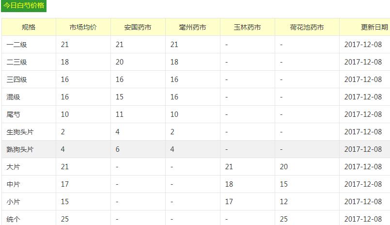 白芍最新行情: