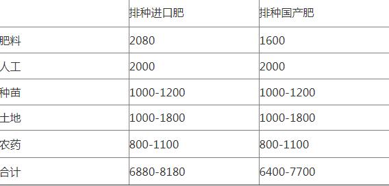 每个人的种植成本都是不一样,每个地方像人工、地价、肥料、批发价等都是不同的,所以具体还得以实际情况为准。下面就以图表形式简单的举个例子: