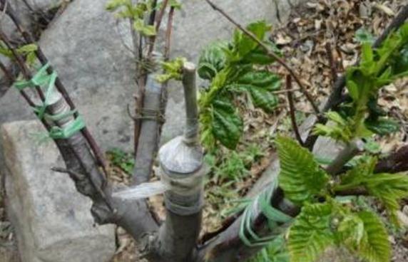 ⑥解绑宜在第二年春季萌芽前10天左右解除捆绑的塑料薄膜。同时,还要继续抹除砧木上长出的萌蘖。