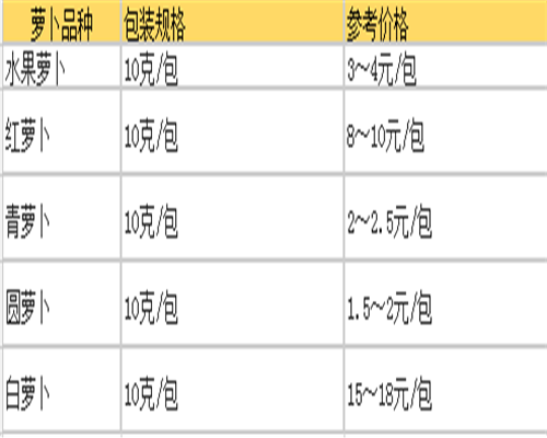 一、市面上萝卜种子价格多少钱一包?