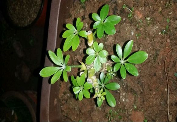 鸭脚木不耐寒,冬季应保持室温在10℃以上,若室温长时间低于8℃,叶片会逐渐枯黄,若降到0℃以下就会导致叶片脱落,所以鸭脚木最难熬的冬季,需要控制好室内的温度。