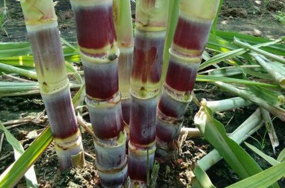 比起青皮的甘蔗,紫皮甘蔗比较粗,节点比较稠密,整个甘蔗的外皮都是紫黑色的。蔗糖含量是要低于青皮甘蔗的,还原糖却较多,所含的纤维也相对较少。性质温和,脾胃虚寒的人也可食用。
