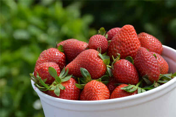 1.观察购买的草莓的形状。奇形怪状的、凹凸不平而且特别大的,最好不要采摘,尽量选自然成熟的健康草莓呈圆锥形或长圆锥形的。