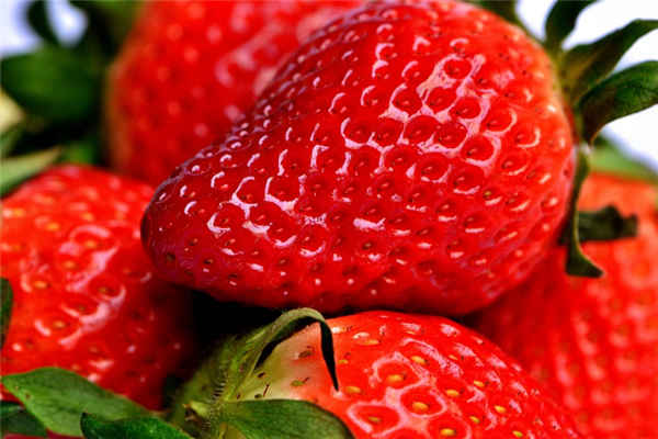 3.观察草莓上的芝麻粒。好的草莓上的芝麻粒一般都是呈现金黄色的。如果草莓芝麻粒颜色也是很红的,就要注意了。