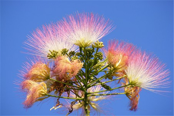 食疗保健作用:合欢的皮、花、叶均可入药,性味甘平,有安神解郁,活血清肿,生肌续骨之功。《中国药学大辞典》写道"合欢树植之庭院,使你解忿而欢乐,故有之称"。合欢花有安神解郁疗效,可用于七情所伤而致的忿怒忧郁、虚烦不安、健康失眠等症,常服可以健脑益智。合欢皮也是神经系统的强壮调节剂,许多安神药中均有合欢成份。
