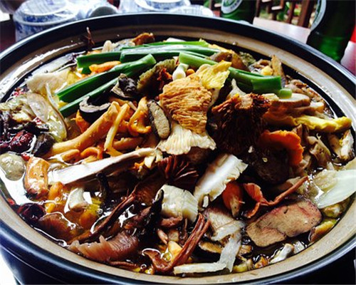 鸡枞又名鸡宗、鸡松、鸡脚菇、蚁枞等,是一种美味山珍,称之为菌中之王,其肉肥硕壮实,质细丝白,味鲜甜脆嫩,清香可口,可与鸡肉媲美,故名鸡枞。它含有钙、磷、铁、蛋白质等多种营养成份。鸡队吃法很多,生熟炒煮作煲汤皆宜,滋味均极鲜美。用鸡枞可以制作多种名菜,成为鸡枞宴席。鸡枞经过晾晒、盐渍或用植物油煎制而成为干鸡枞、腌鸡枞或油鸡枞,可以贮存较长时间,以备常年食用。鸡枞产季为每年的六至九月,多半生长在未受污染的红壤山林的半山坡上。