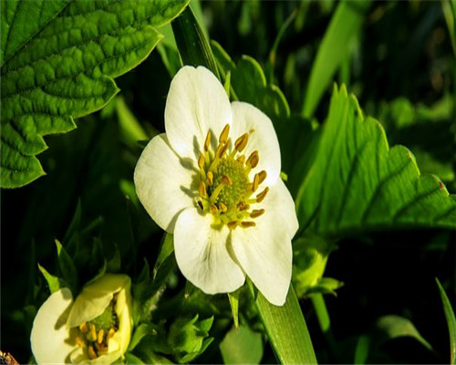 草莓苗因为有较发达的根系和茂盛的叶片,所以对水分要求较多,在生长期一般2-3天浇一次水,进入坐果期一定要控水,来增加果实的饱满度和含糖量,一般一周浇一次水;在草莓花期一定不能缺磷少钾,否则会造成花少、果小、味淡,一般在花期每周施加一次磷酸二氢钾肥或者是骨粉肥,这样就能保证有更多美味的草莓结出。