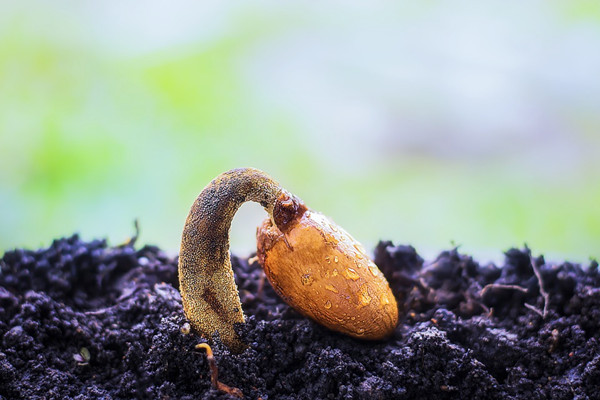 3.榴莲核泡在水里2-3天后,就会开始发芽,冒出一个小尖芽。这个时候就可以把榴莲核的皮去掉,把里面的芽拿出来放到花盆里面中,露出种子的发芽部分,盖上一层薄土。盆土要选择一些疏松的、排水性较好的、透气的土壤,土壤的湿度要适宜,不能太湿,否则种子容易腐烂。