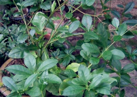 二:扦插繁殖:在5月底、6月初当气温达20~30℃时,选择健壮的枝条,剪成长6~8cm、具两对叶的插条,保湿备插。