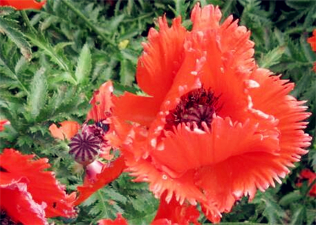 罂粟花种植对土壤要求不严,但以疏松肥沃沙壤土最好,行距20厘米,播后用地膜覆盖,或于早春地表刚解冻时播种,出苗后逐步揭去地膜。当幼苗有5~6片叶子时,进行间苗,株行距一般为30cm×30cm。不耐移植,因此最好园地直播。幼苗生长期,浇水不能过多,但需保持湿润。花前追施2~3次稀薄液肥,但施肥不可过多,否则易发生病虫害。发现病株,要及时进行治,并注意田间卫生。
