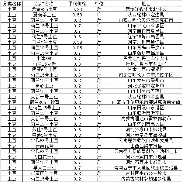 马铃薯南方产区基本接近尾声,云南以盈江、芒市、广东惠州为中心的,现货源剩余不多,周围陆续上市的小产区也并无太大影响,整体蔬菜市场也进入僵持阶段,形成新土豆价格高、老土豆无人买的局面。