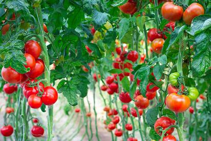 我国番茄高产施肥技术、配方、时间和效果:番茄为一年生草本植物,属于茄果类蔬菜,生育周期大致分为发芽期、幼苗期、开花坐果期和结果期。番茄对土壤要求不太严格,但适宜土层深厚,排水良好,富含有机质的肥沃土壤。番茄植株连续开花结果,生育期长,产量高,需要从土壤中吸收大量养分。主要是氮、磷、钾三要素,以钾最多,氮次之,磷较少。据测算,每生产1000千克番茄需吸收氮2.7~3.2千克,磷0.6~1.0千克,钾4.9~5.1千克,钙2.5~4.2千克,镁0.43~0.90千克。其中三要素的吸收比例氮:磷:钾为1:0.28:1.80。