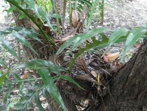 2.具有肉质肥厚的根茎,生于岩面或贴于树干成附生植物。是分布于热带或亚热带的岩生植物。根茎可盘结成垫状块,大型羽状叶片极富观赏价值。