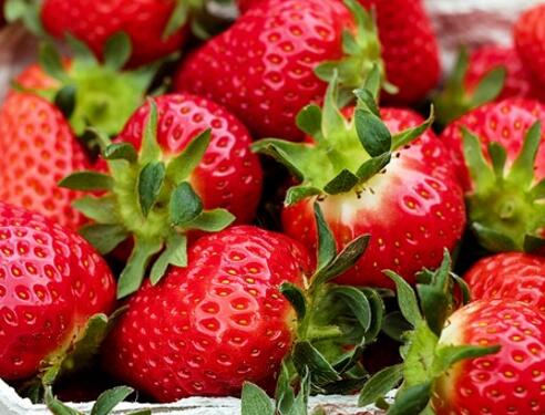 草莓苗开花、坐果到浆果着色,软化,释放特有香味,时间约30天。草莓浆果成熟后,应分批采收上市。一般亩产草莓1500千克。