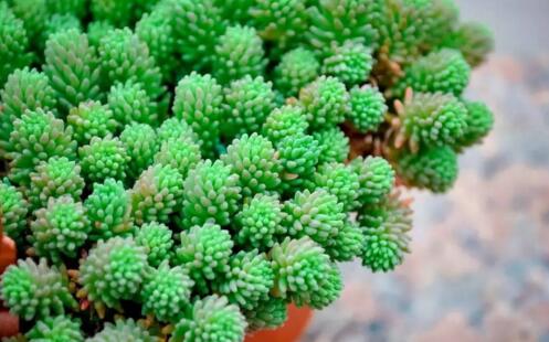 薄雪万年草体型小巧,可是一旦长开了,就铺满整个盆面,每个叶片都很小巧翠绿,看起来非常精致呢,它长得很快,蹭蹭爆盆,养起来一点也不费事。薄雪万年草耐旱也耐湿,只要不是长期干旱或者长期湿润都可以长得很好,可在介质略干的时候就浇次水。长期不浇水的情况下,叶片会明显萎缩,无精打采的样子,这时候只要浇足水,一般几天就恢复了。如果株型不紧凑,有徒长的嫌疑,则要注意增加日照时间、适当减少浇水。薄雪万年草光照不足则会造成植株徒长,使得叶与叶之间的距离拉长,看上去稀松难看,而且植株长势孱弱,很容易引起黑腐病等病症,使得整盆植株腐烂,全军覆没。生长期保持盆土湿润,避免积水,也不要长期雨淋,这些都是为了避免植株腐烂。