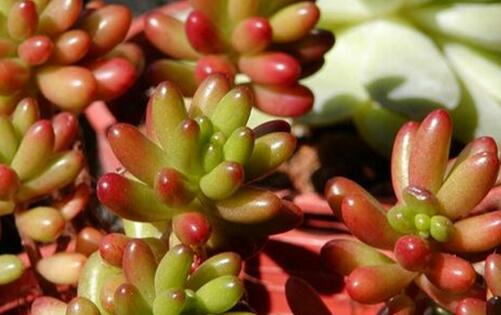 虹之玉的叶片有点椭圆形,叶尖是圆溜溜的,叶片颜色有红有绿,如果在阳光充足的地方放几天,马上就变得鲜艳耀眼,叶尖还透明呢,美极了!虹之玉对水分的需求较少,基本上每周浇水1-2次即可,虹之玉要遵循不干不浇,浇则浇透的原则,气温较低的时候要适当的减少浇水量。虹之玉喜欢温暖的环境,对光照需求相对较大,喜欢日照较强的环境,因此可以将虹之玉植株放置在明亮的客厅或者是养殖在阳台都可以。虹之玉适应温度的能力比较强,昼夜温差较多也利于虹之玉的生长,在10℃至28℃之间生长更加茂盛。虹之玉对水分需求一般,基本上每个月施肥一次有机液肥,施肥的时候尽快避开枝叶以免导致枝叶腐烂。