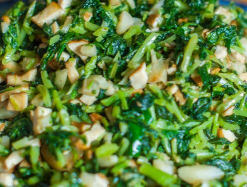 3.马兰头洗净,沸水焯熟后挤干水斩成细末。各料拌和并加上调味品即成。