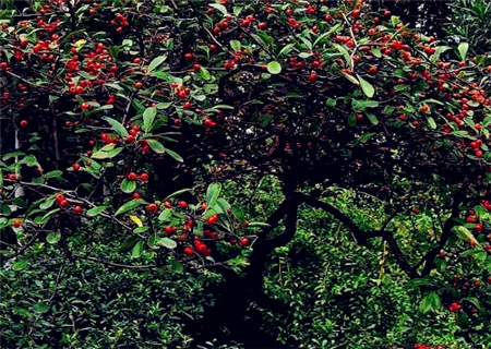 4.整形:火棘自然状态下,树冠杂乱而不规整,内膛枝条常因光照不足呈纤细状,结实力差,为促进生长和结果,每年要对徒长枝、细弱枝和过密枝进行修剪,以利通风透光和促进新梢生长。