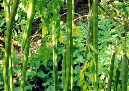2、肥水管理:辣木的需水量不大,在幼苗时期只要保持适当湿度即可,干旱季节要适当灌水,以利于生长。辣木耐贫瘠,一般可以不施肥,但为了促进生长,提高产量,施肥有利于产后树势恢复和树体越冬。在采摘豆荚前,可每隔15~30天施0.3~0.5%的复合肥水液,或在植株四周挖沟施入有机肥或灶灰。幼树期以浅施,轮施为宜,成年树适当深施,可采取点施、条沟施和放射沟施肥等方法。