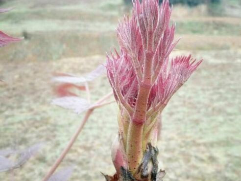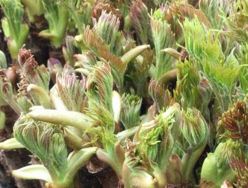 9.适时采收:刺嫩芽掰去顶芽后,顶芽下部的1~5个侧芽或顶芽的副芽萌发,因此可采摘多次,最好以2~3次为适宜,不要多次的采摘,以免累树,嫩芽以10~15厘米,叶片尚未展开为宜,侧芽叶片展开早,可在5~10厘米时采摘。