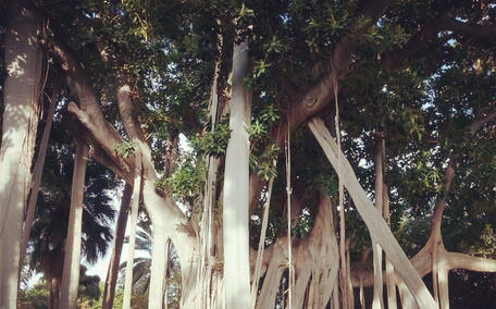 当我说许多株榕树的时候,朋友们马上纠正我的错误。一个朋友说那里只有一株榕树,另一个朋友说是两株。我见过不少榕树,这样大的还是第一次看见。