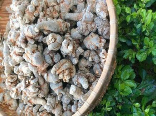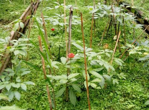 3.种苗移栽:三七在苗床生长一年后(俗称“籽条”)必须易地移植,移植的新地须与苗床用同样方法整理,最好在大雪或冬至期间进行。将苗床的“籽条”掘起,剪去茎叶,俗称“棵子”放入穴中,施以混合肥一撮,覆盖本土寸许,按24×20厘米或27厘米×20厘米寸行距开沟,沟深3~5厘米寸,栽苗时,使苗与沟底呈20~30度角,边栽边盖土,厚度以不露出芽头为准,不宜太厚,再盖约1~1.5厘米厚的碎草,以不见土为原则。