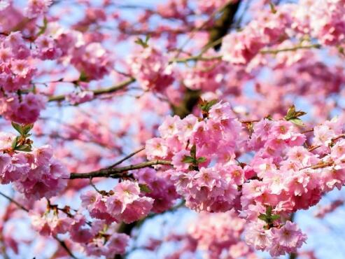樱花色鲜艳亮丽,枝叶繁茂旺盛,是早春重要的观花树种,常用于园林观赏。以群植,也可植于山坡、庭院、路边、建筑物前。盛开时节花繁艳丽,满树烂漫,如云似霞,极为壮观。可大片栽植造成“花海”景观,可三五成丛点缀于绿地形成锦团,也可孤植,形成“万绿丛中一点红”之画意。樱花还可作小路行道树、绿篱或制作盆景。