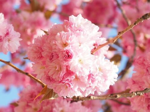 修剪主要是剪去枯萎枝、徒长枝、重叠枝及病虫枝。另外,一般大樱花树干上长出许多枝条时,应保留若干长势健壮的枝条,其余全部从基部剪掉,以利通风透光。修剪后的枝条要及时用药物消毒伤口,防止雨淋后病菌侵入,导致腐烂。樱花经太阳长时期的暴晒,树皮易老化损伤,造成腐烂,应及时将其除掉并进行消毒处理。之后,用腐叶土及炭粉包扎腐烂部位,促其恢复正常生理机能。