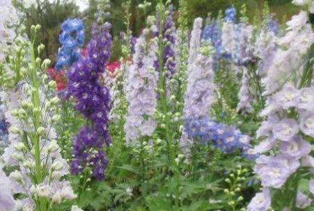 飞燕草花形别致,色彩淡雅。或丛植,栽植花坛、花境,也可用作切花。