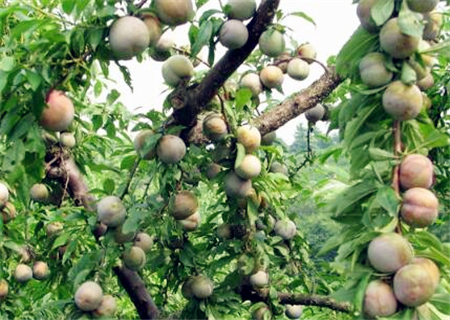 四、病虫害防治三华李常受蚜虫、尺蠖、流胶病和炭疽病等危害。病虫发生时应选用对口药剂,抓准防治适期进行科学防治。蚜虫在2月下旬至3月下旬盛发,可结合根外追肥喷施蚜虱净或吡虫啉;尺蠖始盛期可用敌百虫喷雾。流胶病在7~9月高温干旱时容易发生,发病时用小刀刮去病部流胶物后,再用波尔多液涂抹病部;防治炭疽病,首先要做好清园工作,及时清去病枝,并集中烧毁;其次,在每次新梢抽出时用托布津等药剂喷雾防治。
