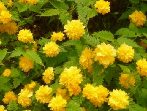 2.棣棠花枝叶翠绿细柔,金花满树,别具风姿,可栽在墙隅及管道旁,有遮蔽之效。宜作花篱、花径,群植于常绿树丛之前,古木之旁,山石缝隙之中或池畔、水边、溪流及湖沼沿岸成片栽种,均甚相宜;若配植疏林草地或山坡林下,则尤为雅致,野趣盎然,盆栽观赏也可。