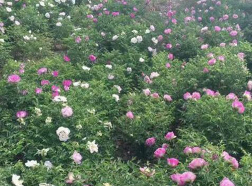 油用牡丹定植密度事宜动态管理,定植时一般为3000株/亩左右,株行距30cm×80cm或者40cm×(90+50)cm宽窄行移栽。也可以选择株行距20cm×60cm的大密度栽培,以后每隔1-2年移除一行牡丹。