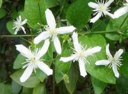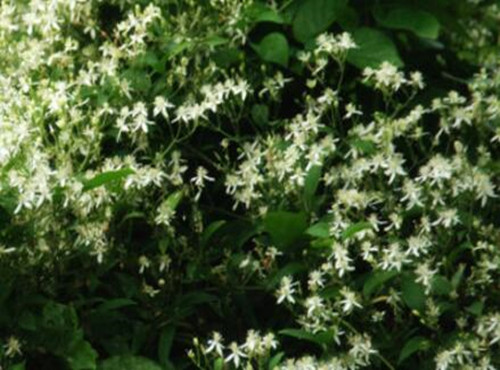 5.搭架修枝:威灵仙苗高30~50厘米时用树枝等架材在行间搭架供植株攀缘生长,避免茎、叶堆聚缠绕在一起,因通风透光不良而影响生长,为促进根系发展适当剪去过密的藤条。