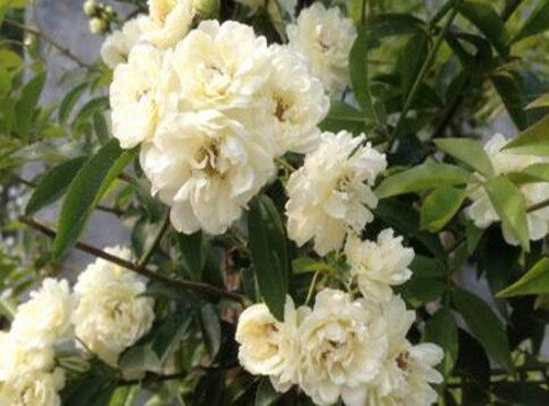 木香花苗种植后2-3年便能开花。一般来说,木香花苗于早春栽下,只要养护得当,种植后的2-3年便会开花。花后管理得好的话,接下来就能够年年开花。木香花的花期为4-5月。木香花的花小形,多朵成伞形花序,花直径1.5-2.5厘米;花梗长2-3厘米,无毛;萼片卵形,先端长渐尖,全缘,萼筒和萼片外面均无毛,内面被白色柔毛;花瓣重瓣至半重瓣,白色,倒卵形,先端圆,基部楔形;心皮多数,花柱离生,密被柔毛,比雄蕊短很多。