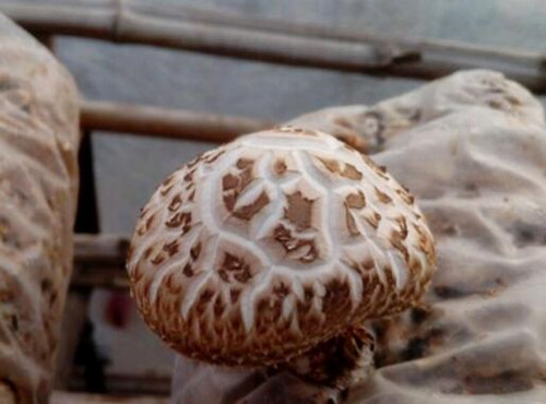 7.巧育花菇:在保证棚内昼夜温差达10℃以上、空气湿度在70%以下的同时,注意加强通风和避雨避雾。花菇生长期,遇到1~3级微风天气,昼夜揭膜通风;从菇蕾直径2厘米至采收结束,晴天白天和晚上揭膜,加大昼夜温差和通风量,促使花菇形成。此外,在冬季和早春,晴天白天揭膜,让阳光直接照射花菇,可增加花菇白度,提高花菇等级。低温天气,晚上要盖上薄膜。