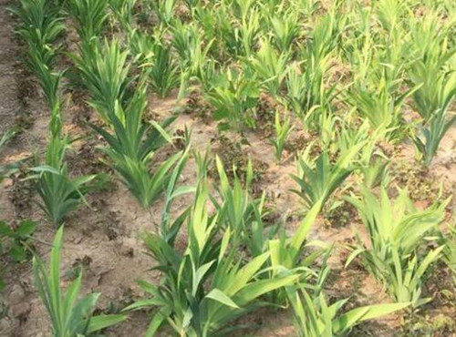2.种植:在3月春种或在11月秋种均可。种植时,在整好的畦面上,按行株距25厘米×20厘米或30厘米×20厘米开穴,穴深15厘米,穴底施入土杂肥0、5公斤,并与穴土拌匀,然后每穴放入种茎1~2段,芽眼向上,或穴植1~2株苗,覆土压实,浇入稀薄人畜粪水后再覆土整平畦面。